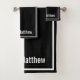 modern elegant black & white monogram script name bath towel set, classic home decor . elegant custom gift for fathers and grandpa .