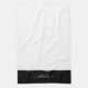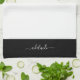 Modern Elegant Black White Script Name Monogram Tea Towel