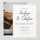 Modern Elegant Black & White Script Photo Wedding Invitation