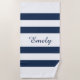 Modern Elegant Blue And White Stripes Pattern Name Beach Towel