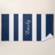 Personalized Modern Elegant Blue And White Stripes Pattern Name Beach Towel.