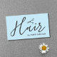 Elegant customisable business card template with black scissors icon /light blue and handwriting bold text. Modern clean design, perfect for hair stylist, hairdresser.