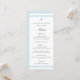 The classic elegant baptism menu card is a modern, clean featuring pastel blue stripes and a minimal cross with editable grey text.