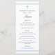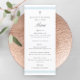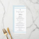 The classic elegant baptism menu card is a modern, clean featuring pastel blue stripes and a minimal cross with editable grey text.
