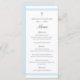 The classic elegant baptism menu card is a modern, clean featuring pastel blue stripes and a minimal cross with editable grey text.