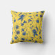 Modern Elegant Blue Flowers Mustard Yellow Cushion