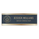 This sophisticated name tag design features a sleek dark blue background framed by elegant gold borders, exuding a premium and professional aesthetic. Your custom logo is prominently displayed, complementing your name and title presented in a refined, legible font. This design offers a timeless and polished look, perfect for making a distinguished impression.