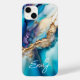Modern Elegant Blue Gold Marble Personalised Name Case-Mate iPhone Case