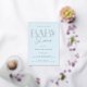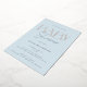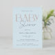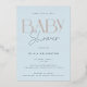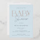 Elegant and modern gold foil baby shower invitation card in light blue with a striped backer.