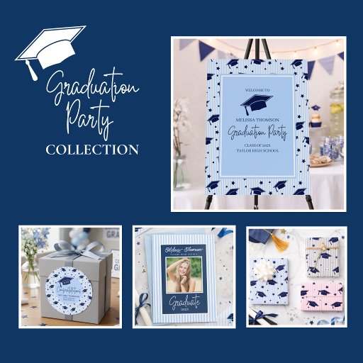 Modern Blue White Graduation Party Celebration Designed by Melissa G