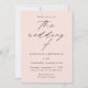 Minimalist, modern wedding invitation featuring your wedding details in simple black lettering with "the wedding of" in an elegant calligraphy script with a blush background. The invite reverses to display your vertical engagement photo. Designed to coordinate with our Modern Elegance wedding collection.