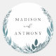 Modern Elegant Botanical Teal Blue Wreath Wedding Classic Round Sticker