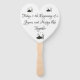 These fans were exactly as pictured. The quality is great. Perfect favor for a wedding!...I will make assembly a little easier by using a hot glue gun and finish them off with a ribbon. Beautifully printed. Crisp and clear text.