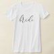 Modern "bride" t-shirt features a minimalist design and elegant script font. The wording cannot be changed, but the colours can be changed in "Edit Design" mode. Check out matching designs for the rest of the bridal party in the "Bridal Party Gifts" collection and matching wedding items in the "Modern Elegant" collection.