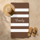 Personalized Modern Elegant Brown And White Stripes Pattern Beach Towel.