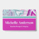 Cute Monogram Initial Teal Magenta Agate Name Badge. Agate crystals and geodes continue to be a favourite trend! This print features and up close image of a teal or turquoise and purple or magenta pink geode stone, complete with little crystals and white banding. Accented with vibrant colour blocking to give it a modern and trendy look. Add your initial to make it your own.