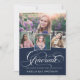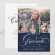A modern graduation invitation featuring the word “graduate” on the front in stylish script calligraphy, plus 4 of your favourite senior photos. Add your own personal celebration details to the back. This is the navy blue version.