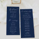 This wedding program features elegant white calligraphy on a rich navy background, creating a modern and sophisticated design that sets the tone for your ceremony. Couples can personalise the program with their names, wedding date, and ceremony details in bold white lettering, ensuring a clear and stylish presentation. The reverse side elegantly displays the names of your bridal party, adding a personal touch to this essential wedding detail. Perfect for both formal and casual weddings, this wedding program seamlessly blends simplicity and elegance, making it a timeless addition to any celebration, no matter the season.