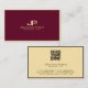 Custom Modern Simple Elegant Professional Design Calligraphy Script QR Code Template Standard Size Semi-Gloss Luxury Bordeaux & Gold Business Cards. Ideal for Real Estate Agents, Accountants, Realtors, Brokers, Attorneys, Lawyers, Doctors, Corporate Professionals, Stylists, Architects, Engineers, Directors, Managers, Consultants, Designers, Teachers, Musicians, all professions.