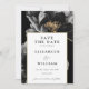 This elegant black and white floral wedding save the date can be personalised with your information in modern typography and a special photo on the reverse. Designed by Thisisnotme©