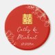 Modern elegant Chinese wedding floral script red Magnet