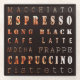 Types of coffee for all caffeine lovers: espresso, cafe latte, cappuccino, macchiato, mocha, frappe, ristretto, flat white, long black, affogato, con panna, would appeal any caffeine lover and complement a coffee shop or any kitchen and dining home decor original artwork by tanjica