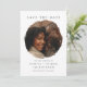 For the couple who are getting married and want a simple yet contemporary and stylish wedding save the date. This save the date card allows for the inclusion of one couple photo, the names of bride and groom to-be and the all important wedding date. Let friends and family know to save the date in their calendar with a simple, elegant and minimalist style wedding save the date. The couple's photo will appear in an irregular shaped and trendy circle, giving the design a more contemporary feel.