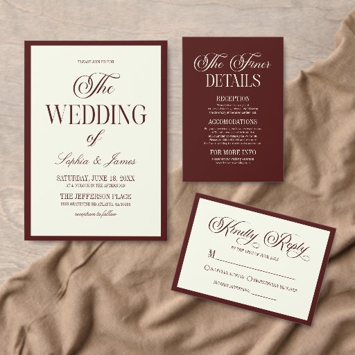 Modern Elegant Dark Burgundy Ivory Wedding Save The Date