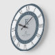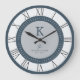 Modern Elegant Dusty Blue Grey Monogram Family Large Clock