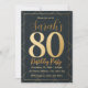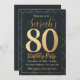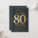 This elegant invitation card features a large, gold-foiled "80" on a dark background, making it perfect for celebrating a milestone. The classic design is accented with subtle geometric patterns, adding a touch of sophistication. Personalise with the party details to complete this stylish invitation.