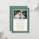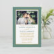 Modern Elegant Minimalist Photo Eucalyptus Green and White Wedding Invitation. Gold Frame. Gold Script.