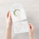 Introduce your guests to the beauty of your wedding day with this stunning all-in-one wedding invitation set. Featuring a soft eucalyptus watercolor wreath, this invitation merges natural beauty with modern sophistication. The unique design also functions as its own envelope, making it both stylish and practical.