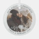 Custom-designed photo ornament featuring "our first Christmas engaged" modern simple design with personalised photo, name, and year.