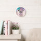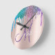 Modern Elegant Glitter Drips Rose Gold Monogram Round Clock