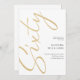 Create your own personalised 60th birthday party invitations featuring minimalist script typography in gold colour.