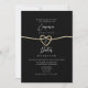 Invite your loved ones in style with this modern elegant black and gold wedding invitation. Featuring a romantic gold rope heart, sleek black background, and stylish calligraphy, this design blends classic elegance with a contemporary edge. Perfect for couples who want a sophisticated yet romantic look for their special day, fully customisable with your wedding details.