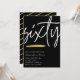 Celebrate the big 60 sixtieth birthday with class with this modern elegant 60th birthday party invitation. Design features the word "sixty" in a classy handwritten script font accented by a pretty gold glitter glam brushstroke. Bottom left of the card showcases the details of the birthday celebration which can be totally customised to your needs. The reverse side feature a pretty striped gold glitter pattern.