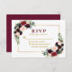Modern Elegant Gold Burgundy Blue Floral Wedding RSVP Card