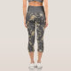 Modern Elegant Gold Flowers on Dark Grey Capri Leggings