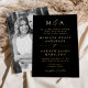 Make a bold statement with this minimalist modern wedding invitation, featuring your monogram initials and wedding details in luxurious gold foil lettering. Elegant calligraphy script accents add a refined touch to the sleek design. The striking black background can be customised to any colour you prefer, perfectly matching your wedding palette. Plus, the invitation reverses to showcase your vertical engagement photo, creating a memorable keepsake for your guests. Personalise yours today for a chic and unforgettable wedding invite!