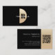 A modern, QR code, monogram business card in black, gold (non-foil), and white. Simply add your information, add these cards to your cart, and then hand them out to future clients.