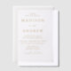 Add a touch of luxury to your big day with our Modern Elegance vellum wedding invitations. Featuring your wedding details in stunning gold lettering accented by elegant calligraphy script, this design is printed on a sheer vellum background for a sophisticated and contemporary look. Perfect for couples seeking a minimalist yet luxurious aesthetic, these invitations radiate timeless elegance and versatility, making them ideal for any wedding theme or season. Personalise the elegant wedding invitations with your names, wedding date, location, and more to create a beautifully tailored announcement that sets the tone for your special celebration.