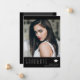 Stylish graduation announcement cards, featuring modern text with an elegant and professional look. The graduates photo the front of the card is enhanced by thin translucent frames on the top and bottom while the back of the card offers personalised text spaces for information about the graduation and future journey. Backgrounds are black with white text on the front and regal shades of grey and black on the back. To see more items like this, visit my store here at "www.Zazzle.com/LakeViewCardCo". Thanks