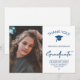 Modern chic white and classic blue typography script making a stylish elegant graduation photo personalized simple thank you card. ++++++++++ Easy to customize with graduate's name, photo, class of year, school, and monogram / name initials! On the reverse, the card is plain white allowing you to write your personal handwritten message or signature to each addressee. ++++++++++ If you need it in specific colors, please contact the designer through the message button below!