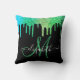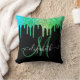 Modern Elegant Green Glitter Drips Black Monogram Cushion