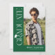 Celebrate your graduate in timeless, elegant style with this modern green and white graduation invitation. Set against a stylish green background, the design features trendy white serif “GRADUATE” typography running vertically down the side, creating a refined focal point. A stylish graduation cap icon sits above the “R,” while the flowing tail of the letter transforms into a sleek tassel—leading the eye to a standout photo of the graduate.