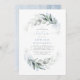 Modern Elegant Greenery Dusty Blue Baptism Invitation