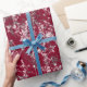 Modern Elegant Grey Wildflowers on Burgundy Red Wrapping Paper