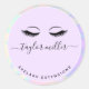 Gorgeous eyelash extensions sticker design featuring colourful faux holographic texture, purple circle and elegant calligraphy font.
