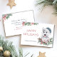 A beautiful card featuring a peaceful setting with a cute Husky dog framed by leaves and greenery. Perfect for sending season's greetings to clients, employees and everyone on your list. Front of card features "Happy Holidays" and your company name. Back of card features your personalised holiday message. Celebrate the season with this elegant card from Cherry Lane Designs!